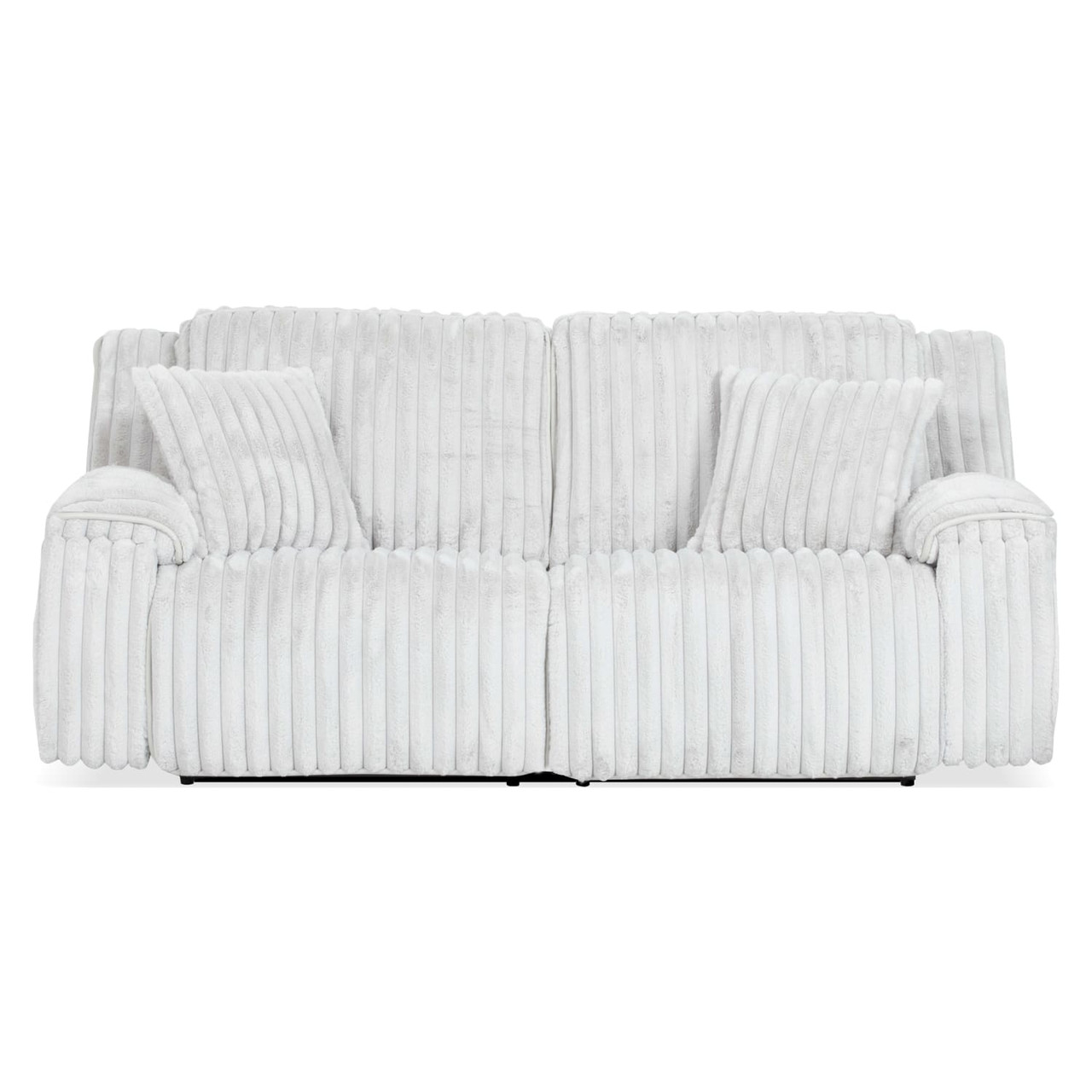 The Utopia Dual Power Sofa brings a fresh, approachable take on casual glam to your space with lavish texture and lush channeling that invites you to curl up for a well-deserved afternoon of rest and relaxation. Upholstered in a super soft, luxurious fabric in neutral dove gray, this faux fur sofa features a subtle inside/out upholstery application with a textured boucle-like fabric on the sides and back. A sleek contrasting welt in faux leather really sets this faux fur sofa apart from the rest of the pack. As a dual power sofa, it’s rated for up to 360-pounds per seat, allowing you to customize your comfort. Plus, the full pad over the chaise footrest ensures you're fully supported along the way.